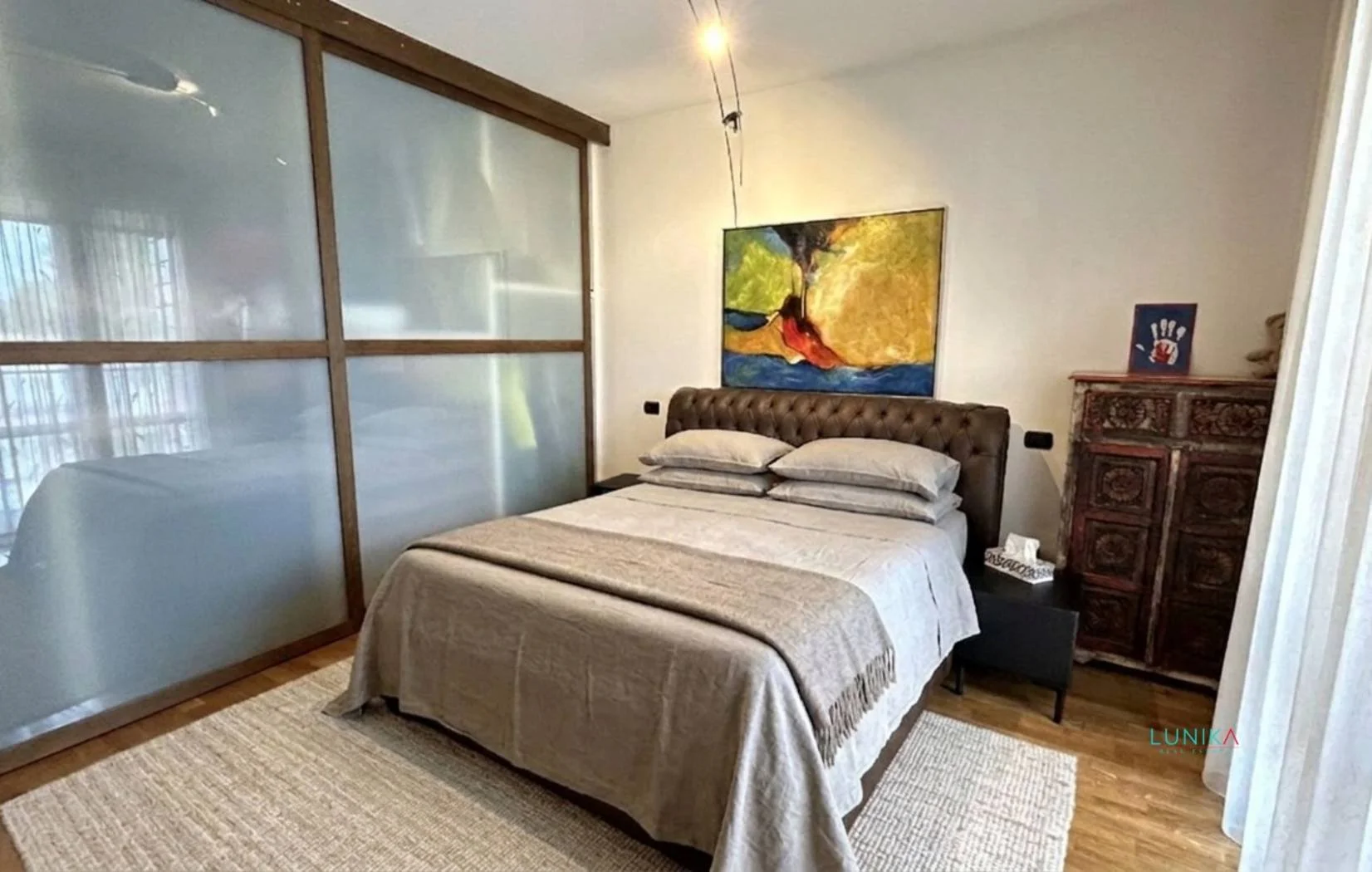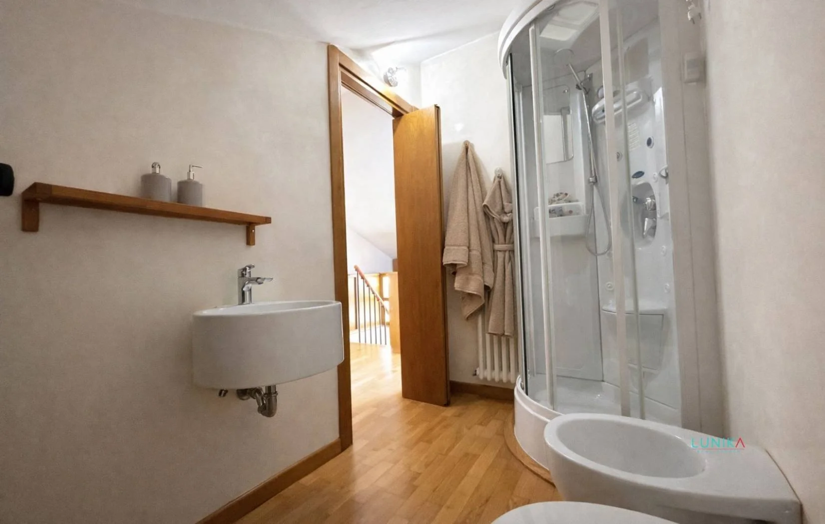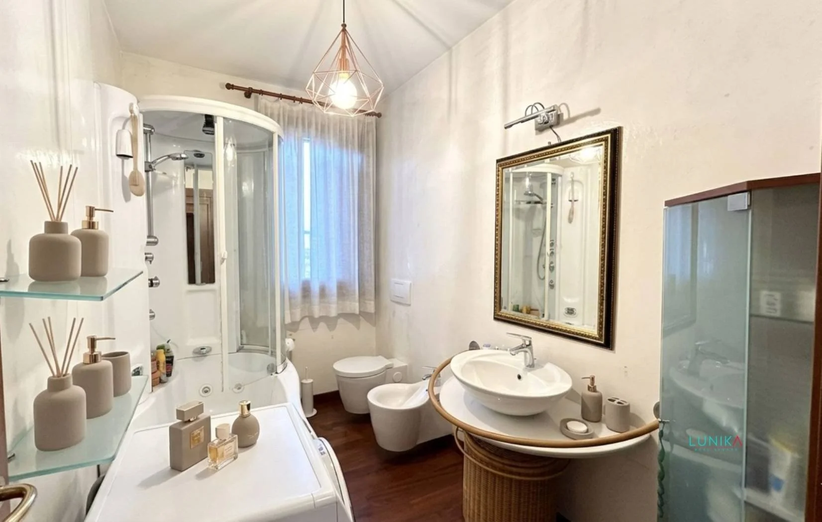 Al piano principale troviamo, inoltre un disimpegno con armadiatura su misura, la camera matrimoniale con accesso a un secondo balcone e un bagno finestrato con vasca idromassaggio.